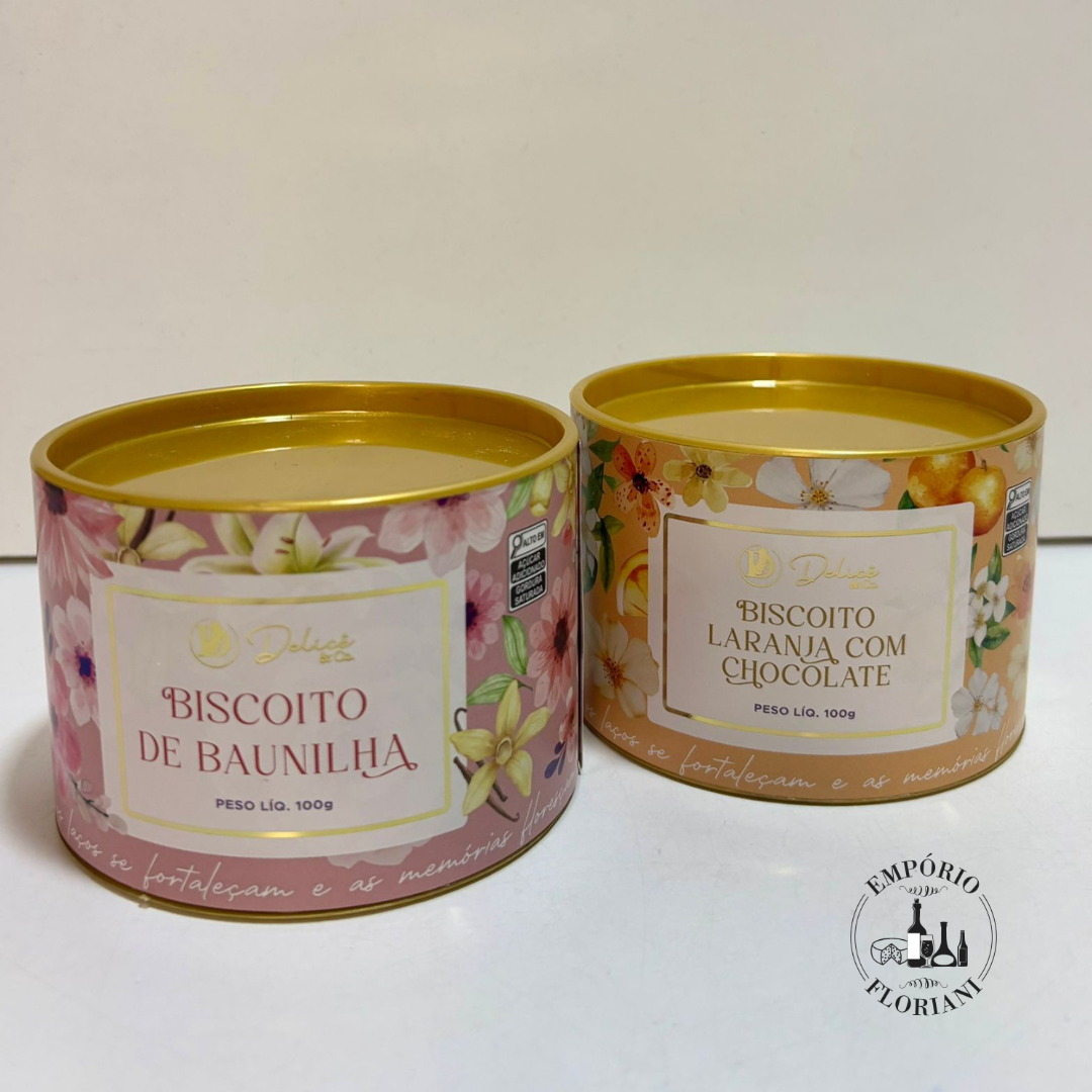 Biscoitos baunilha ou laranja e chocolate no tubo papelão100gr