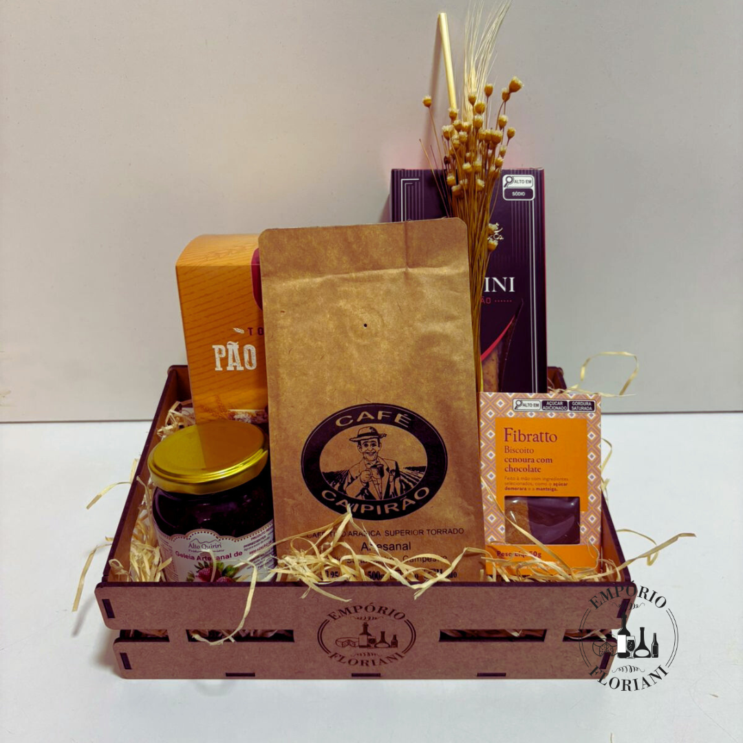 Contém: café especial, grissini, biscoito doce, torradas, geleia