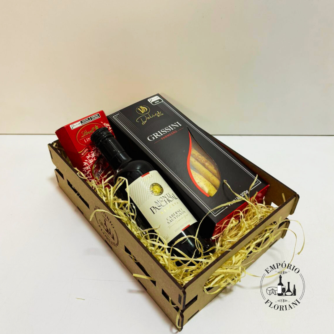 Contem: vinho tinto 250ml, grissini, chocolate premium