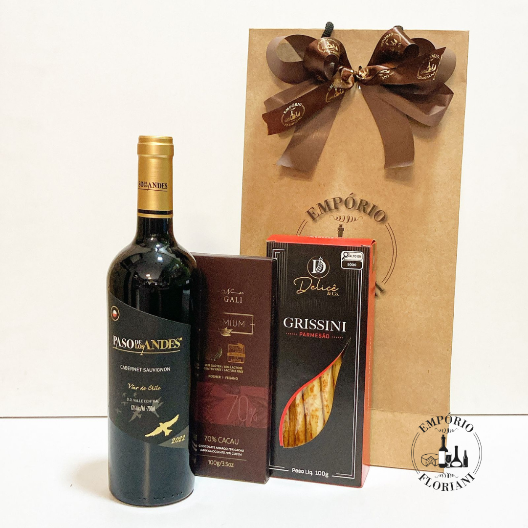 Contém: vinho tinto 750ml, grissini, chocolate premium