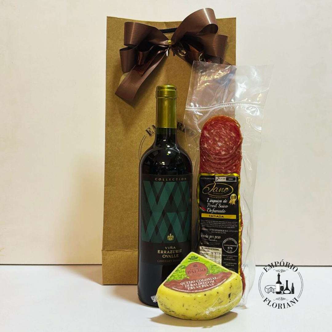 Contem: vinho tinto 750ml, queijo, salame ou copa